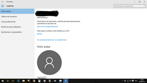 ATTENTION : en compte local, l'application CORTANA (recherche vocale) ne fonctionnera pas, mais vous pourrez toujours taper votre recherche.