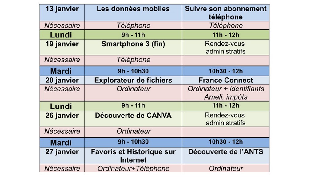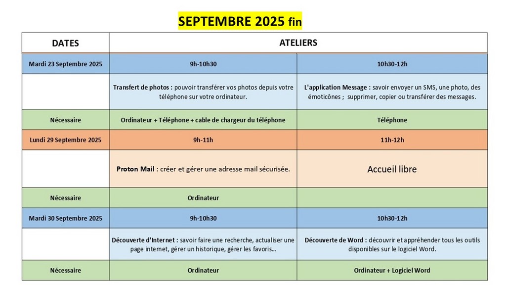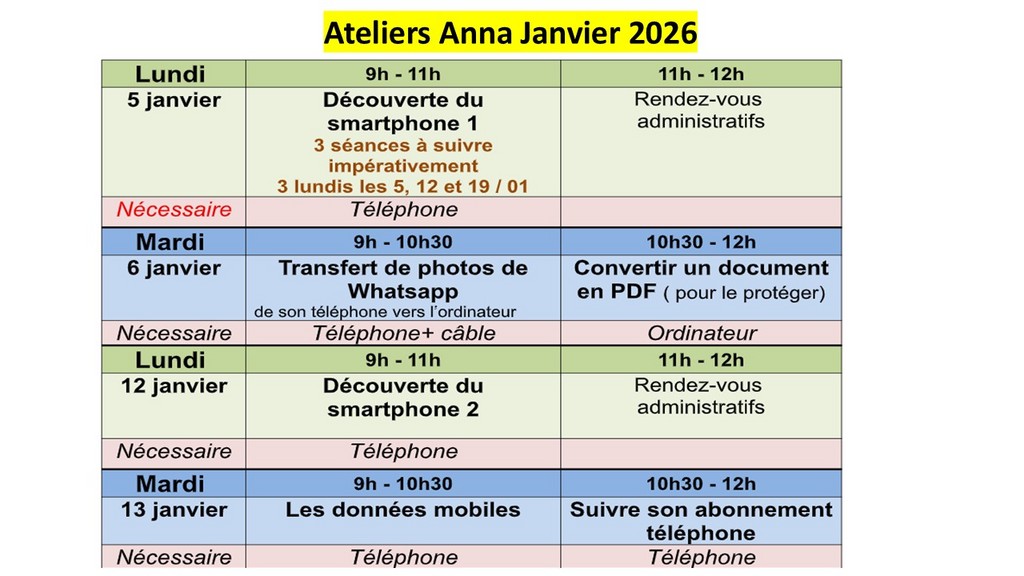 Les ateliers sont GRATUITS POUR TOUS LES ADHÉRENTS à jour de leur cotisation.